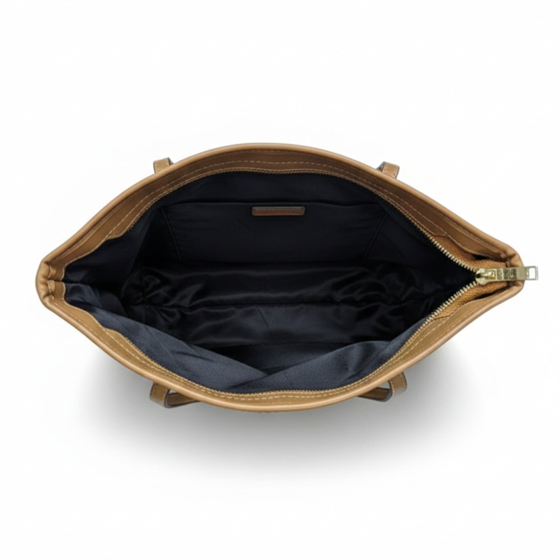 It features a large single compartment with an additional side open pocket, providing practical space to organize daily essentials such as phone, wallet, cosmetics, and keys.